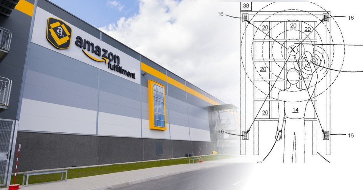 In the patent descriptions, the tracking devices are carefully described as a way to collect data about inventory, not individual employees. They would use ultrasonic pulses — pitches too high for human ears to detect — to connect with inventory modules on bins to track a worker’s hands. Vibrations would communicate information to the wearer, such as alerting someone when they put something in the wrong bin.